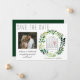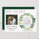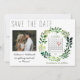 Berätta för vänner och familj att du är gifta sig med de här enkla spara datum meddelande-korten med vattenfärg. Konstruktionen har en strålande typografi och en handmålad vattenfärgad krans av grönt blad. En hedervärd bild av lycklig-paret ger en speciell beröring, liksom personligens kalender. Perfekt för vår eller sommar bröllop.