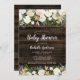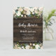 Den unika roliga blommigten för barnduschinbjudan har vita blommor med vattenfärg och ljus på mörkens barrträbakgrund. Perfekt för en vår- eller sommardusch.