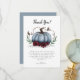 Elegant och rustik barndusch tack vare ett mallkort med en vattenfärgad illustration av en blå pumpa med blommor från faux silver glitter och burgundblommor. Budskapet tackar gästerna för att de kom till duschen och för presenten. Anpassa den här produkten genom att lägga till ditt namn i grund. Utformning av Perfekt-falltema för ett pojke.