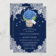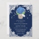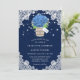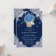 Rustic navy blue hydrangea bröllopsinbjudningar med en hydrangea och baby utandbouquet inne i en mason burk på en baksida och blommigt snöre. Utformning av Perfekt för att bjuda in dina gäster till ditt marina blå rustiska landsbyggsbröllop party inspirerat av vattenblommor. Enkel att anpassa kortet.
