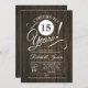 Rustik inbjudan till 15-årsjubileum med mörkbrunt trämönster. Skål för 15 år! Perfekt för en elegant fest.