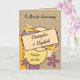 Anpassa detta första Bröllop-årskort för lycklig-paret. Designad i lila, orange och plommon med rand och blommor och med en *Kraft-bildeffektbakgrund. Made åt varandra. *Real Kraft-kortet används inte