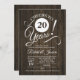 Inbjudan till rustic 20-årsjubileum med mörkt brunt trämönster och vit script-skrift. Skål för 20 år! Perfekt för en elegant fest. Vänligen skicka ett meddelande om du behöver ytterligare anpassning.