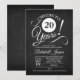 Rustik inbjudan till 20-årsjubileumsfest med svart kritskriftsmönster och vit skrivstil. Skål för 20 år! Perfekt för en elegant firande.