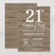 Rustik 21-års inbjudan. Rustik träbakgrund. Vintage Retro födelsedag. Vuxen födelsedag. Födelsedagsinbjudan för män eller kvinnor. 13:e 15:e 16:e 18:e 20:e 21:a 30:e 40:e 50:e 60:e 70:e 80:e 90:e 100:e, Alla åldrar. För ytterligare anpassning, klicka på "Anpassa"-knappen och använd vårt designverktyg för att ändra denna mall.