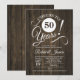 Rustik 50-årsjubileumspartaj Invitation med mörkt trämönster. Skål för 50 år! Perfekt för en elegant fest.