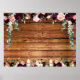 En extra stor affisch på 54 x 40 tum med en rustik, vintageinspirerad bakgrund av gammalt brädläger. En gren med djup burgunderröd och rosafärgade blommor flödar bland silvergröna blomsterkransar och romantiska, ljusstarka blomsterbuketter som spricker ut av peonior och blomsterkonst. Denna affisch är tom så att du kan skriva in din egen text och använda den till valfri tillställning.