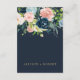 Detaljkort för rustikt akvarell marinrosa guldblommig bröllop. Bukett med marinblå och rosablommor med guldfärgade accenter