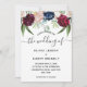 Eleganta rustika akvarellblommiga bröllopsinbjudningar med vackra lantliga blommor i rosablommig rosa, burgunderrött och marinblått. Baksidan av kortet är i modern rosablommig rosa. Lägg enkelt till dina anpassade bröllopsdetaljer.