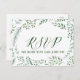 Den här roliga andedräkten med grönt löv-menyalternativet OSA vykort är perfekt för ett utomhusbruk i bröllop. Utformningen har ett vackert och vimiskt ram av löv, växter och grönt vatten. Med det här vykortet i bröllop frågar man på ett bekvämt sätt gästerna vilken måltid de vill ha på mottagningen.