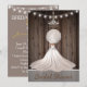 Rustic ändå Elegant Inbjudningskort för möhippan med Bride, Parasol mot en träbakgrund med strängen ljus, hjärtan och chandelier.