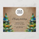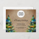 Rustiskt Lägg till Anpassningsbar för Logotyp Julgran Helgdag Business Postcard. Rustik beige bakgrund och vattenfärgad Julgran. Infoga logotypen i mallen och anpassa texten, företagsinformationen namn, adress och kontaktinformationen. Helgdag-kort för dina kunder och affärspartner.