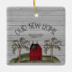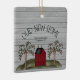Rustic New Home Ornament med Birch-bakgrund, ett saltboxhus med träd och en primitiv guld star. Personlig Ornament säger "OUR NEW HOME" med adress på ditt nya hem och året.