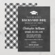 Tänd upp festen med denna rustika kritskiveinbjudan till firande fest som innehåller en examen mössa ikon och fet ”Backyard BBQ” typografi. Perfekt för en avslappnad bakgårds firande, denna design är modern, manlig och enkel att anpassa med examen namn och fest detaljer. Den koordinerande svart och vit buffel plaid baksida lägger till en klassisk avslutande touch.