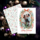 Fira årstiden med detta vackert illustrerade fotokort med en festlig akvarellram bestående av flödande rött band, frodiga grangrenar, livfulla vinterbär och rustika kottar. Kanten runt det älskade fotot skapar en mysig, skogsinspirerad miljö perfekt för högtidshelgningar. Malltexten är helt anpassningsbar så att du kan anpassa ditt meddelande för jul, nyår eller någon annan vinterfirande. Tryckt på strukturerat vitt papper för en handgjord känsla, förenar detta kort naturligt charm med tidlös elegans – perfekt för att dela glädje med nära och kära både nära och fjärran.