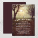 Livets firande begravningsinbjudan med en rustik stig, träd, en andes silhuett och en minnesgudstjänstmall som är enkel att anpassa.