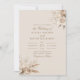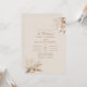 Mjuk, romantisk och elegant utan ansträngning, denna rustika bröllopsinbjudan har krämiga vita rosor och luftiga torkade blommor mot en varm beige bakgrund. Designad för par som älskar naturliga texturer med en raffinerad touch, är den perfekt för ladorbröllop, landsbygdshöllor och romantiska höstfiranden.