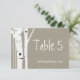 Rustik björkträdhjärtbröllopsbord nummerkort inbjudningar