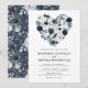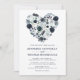 Personliga mörkblå och dammiga blå bröllopsinbjudningar med en trendig vit bakgrund som kan ändras till valfri färg, ett rustikt blått akvarellblomhjärta och en modern brölloppsmall.