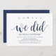 Åh ja, det gjorde vi, bröllopsinbjudan för mottagning efter vigsel i smyg. Detta rustika marinblå (du kan anpassa alla färger) bröllopsinbjudan med tema vigsel i smyg är perfekt för din bröllopsmottagning och efterfirande. Lägg till dina detaljer i matchande typsnitt / bokstäver.