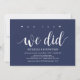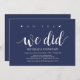 ja, det gjorde vi, bröllopsflykt inbjudan kort. Detta rustika blå (du kan anpassa alla färger) bröllopsflykt tema inbjudan kort är perfekt för din bröllopsmottagning och efterbröllopsfirande. Lägg till dina detaljer i matchande teckensnitt / bokstäver.