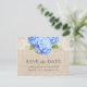 Rustik Blå Hortensia Spets & Jute Spara Datum Meddelande Vykort