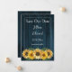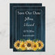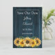Anpassa ett unikt bröllop-meddelande med en Rustic Blue Sunblomma Spara datumet. Meddelandedesign har en bakgrund av rustiskt trä med en elegant av solblommor. Ytterligare spara datum meddelande som är tillgängligt för den här konstruktionen i en mängd olika färg.