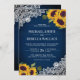 Rustik Blå Trä Broderi Solros Bröllop Inbjudningar