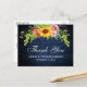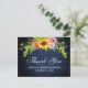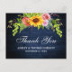 Rustik Blå Trä, Akvarell Solros Blommig med Rosor, Pionor och Grönt Bröllop Tacksamhetskort