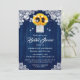 Rustik Blå Trä Spets Solros Bröllopsfest Inbjudningar
