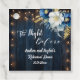 En elegant bröllopsdesign med elegant kalligrafi, komplett med underbara blå trädetaljer, trädgårdsljus och vita blå blommor med guldglitter. Du kan anpassa detta med dina detaljer.