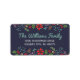 Prydliga vinterblommor, kotte och bär sprids över en djup midnattsblå bakgrund på denna rustika juladressetikett. Mjuk akvarellskrift och raffinerad seriftext ger charmig julkaraktär. Personifiera med ditt familjenamn och adress för julsändningar. En festlig finish för varje julkuvert.