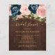 Landsbygdens charm, prisvärd bröllopsfest för bruden, stilfull inbjudan small mallig på en mörkbrun lada träbakgrund med en rosablommig och marinblå peonrosor blommig kant och ett trendigt elegant handskrivet falskt guld typografi stil.++++++++++++++ Lätt att anpassa med dina detaljer! +++++++++++ Inbjudan är lämplig för en lantlig utomhus trädgård bakgård bröllopsfest för bruden, brunch eller lunchfest. ++++++++++ VÄNLIGEN LÄS DETTA INNAN KÖP! Detta är ett budgetvänligt bröllopskort tryckt på ett pappersark (varje ark har ett kort). +++ För bästa förhållande pris-kvalitet, vårt råd är att välja Semi-Gloss papperssort (det är tillräckligt tjockt för att användas för brevpapper) +++ Om du behöver kuvert, välj KUVERTERALTERNATIV. +++ Dubbelkontrollera all information och stavning av din text eftersom du kommer att få exakt vad du ser - ingen annan kommer att kontrollera någonting innan tryckning. +++ Detta kort är designat för storlek 4,5" x 5,