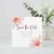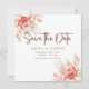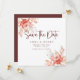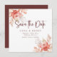 ditt bröllop-datum med det här kortet för blommigt bröllop spara datum. Den här utformningen har mjuk vattenfärg ro, jordfin löv och elegant-manustypografi, och är perfekt för romantiska, bohemiska eller trädgårdsäcksmätningar.