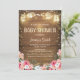 ♥ en roligt och en rustik koad babydusch inbjudan! Blommor med träbakgrund.