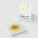 Rustik blommigt underlägg med gult solros och blek blå bakgrund. Lägg till det här vackra skördeobjektet till din land-hemdekoder.