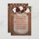 Perfekten för land boho bröllop, den här OSA kort för rustik blommigt matchar bröllopsinbjudningarna och har en bukett av burgundi och blommor ovanpå en burk med den viktiga texten inuti. String ljus dekorerar mönstrets överkant med en bakgrund av rustiskt trä.