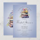 Gratulerar till bristen som ska bli vår charmerande "början på ett nytt kapitel" inbjudningskort för möhippa! Med en vit vattenfärgsstapel av bokar, försedd med ömtåliga vilda blommor, är detta en perfekt för älskare och drömmare i bok. Den mjuka blå bakgrunden med en subtil vit oskärpa lägger till en elegant, medan avslappnaden med ett lekfullt teckensnitt anger tonen för ett hjärtfilt och glatt firande. Skapat av Farmhouse Press.