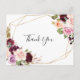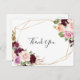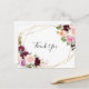 Denna gedigna blommigt och botaniska barr-tack är perfekt för det moderna bröllop. Utformningen har vackra och färgstarka, handdragna blommor och löv, elegant placerade i attraktiva bouquets, som adorerar ett guld-geometriskt ram. Anpassa vykortets baksida, inklusive namn, returadress och ett tackmeddelande. Du kan också lämna att meddelandemallsavsnittet är ogiltigt om du vill skapa några ord på varje kort när de har anlänt. De här korten kan användas för bröllop, möhippa eller när du vill tacka.