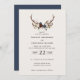 Rustic blommigt och stag antlers bröllopsinbjudan. Med vackra vattenfärgsdetaljer. Den här moderna bröllopsinbjudan kommer säkert att sätta stil för din stora dag.