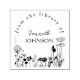 I den här rundbäcken i bibliotek i frimärke finns vackra, rustiska vilda blommor på grund. Texten "från bibliotek av" står överst och krymper på ett bra sätt. Ditt eget namn finns i mitten: först namn i handstil för avslappnad och efternamn i snyggt rustik typografi. Klicka på personlighetsknappen om du vill lägga till dina egna uppgifter och göra den här blommigten bibliotek frimärke unik för dig! Bibliotekare, lärare och bok och naturen älskare skulle kärlek!