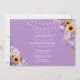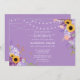 En rik, en elegant som är gjord av lush hydrangeas, solblommor, lavender, vete, baby andedräkt, ivy och ranunculus blommor ger en vacker illustration, handmålad i den digitala vattenfärgen, som dekorerar denna orustiska elegant inbjudningskort för möhippan som har en lilak bakgrund. Romantisk och charmerande, det är ett underbart val för en lada-möhippa, en utomhusmiljö, en möhippa för trädgård eller trädgård eller någon form av rustika.