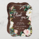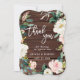 Tack vare det här bröllop-kortet har du en vattenfärgad krans i rosa och vit med gröntens blad på en rustisk träbakgrund. Om du vill ha en mer avancerad anpassning av den här designen klickar du på länken Anpassa ytterligare om du vill ändra teckensnitt, storlekt och färg.