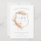 Ett vackert klassiskt bröllop spara datum-meddelande med en falltapp med en vapensköld med en handskisserad sköld, försedd med vattenfärg terracotta persikoblommor och löv, med ditt monogram och bröllop-datum i grått i mitten. Anpassa ytterligare med namn, bröllop och foto på motsatt sida.