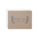 Designen har eleganta, rustika blomsterdetaljer med ett serif-teckensnitt. Bakgrunden har falskt kraftpapper. Färgerna som visas är mörkblå. Dessa kan tillsammans med teckensnitten anpassas helt efter era önskemål..
