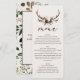 Rustik Meny Kort för Bröllop med Hjorthorn | Boho Skogsinspirerad Bröllopsmeny med Hjorthorn | Elegant Ladalycka och Kustinspirerad Bröllopsinredning
