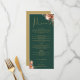 Denna eleganta rustika blomsterbröllopsmeny kan anpassas med din information i chic guldtypografi på en smaragdgrön bakgrund. Designad av Thisisnotme©