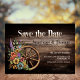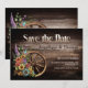En elegant rustik trädgårdsblomma vagn hjul bröllop save-the-date för dig att skicka till dina vänner och nära och kära för att meddela den spännande nyheten om ditt kommande bröllop så att de har tid att göra arrangemang för att delta på din speciella dag.