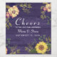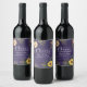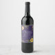 Elegant, modern, rustik trä purpurbröllop vinetikett med akvarellblommor, solrosor och grönska. Skål för kärleken och lyckan!