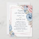 rustik blomstergestaltning i blått och rosa bröllo inbjudningar